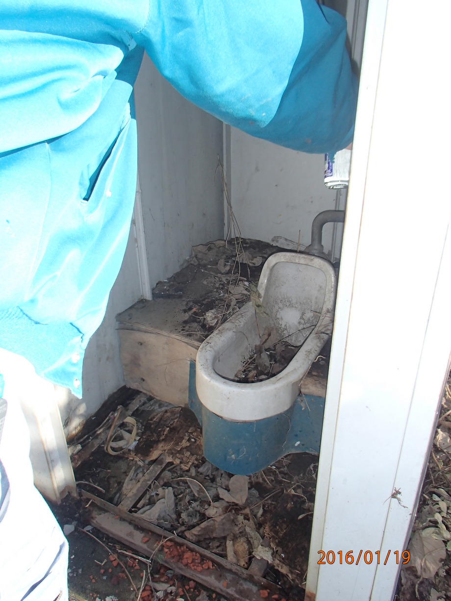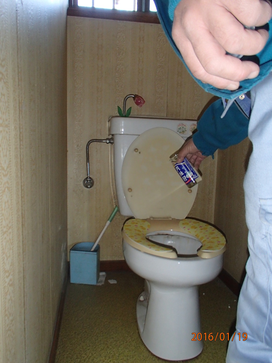何に使うかよく分からないまま、お酒を買って現場に戻ると解体撤去する屋外トイレと室内の水廻りに丁寧にお酒を注ぎ、深ぶかとお辞儀をする花親方![]()