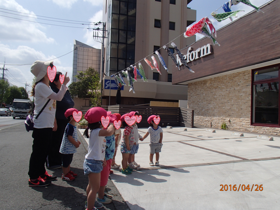 保育園からのお散歩途中に、鯉のぼりを見に来てくれました![]()