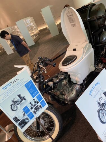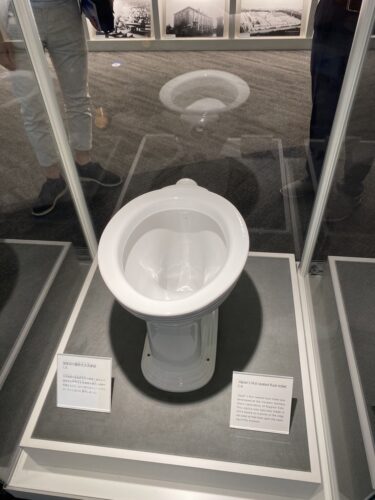 TOTOの歴史を学び、一番最初の腰掛水洗トイレの展示をみました。