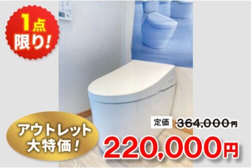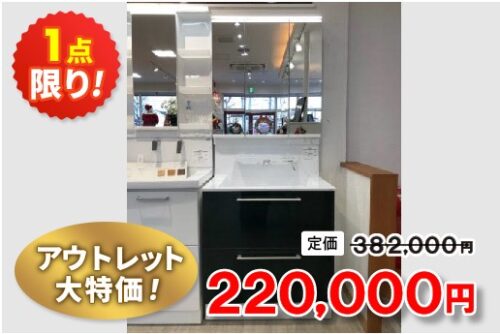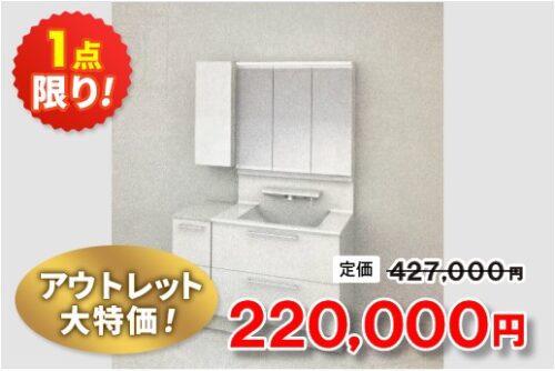 浴室から洗面台、トイレまでアウトレット商品を各1台限り、