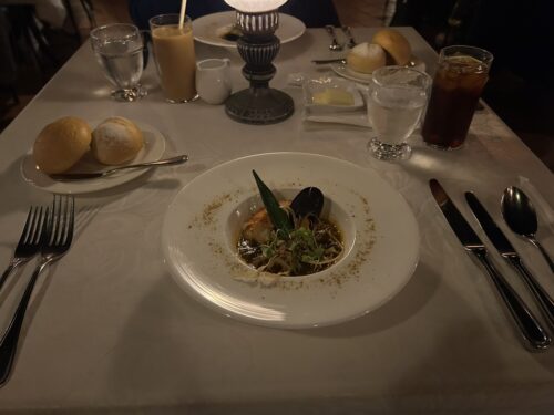 ご飯はこんな感じでコース料理でした!こちらはオマールエビのガンボスープ!