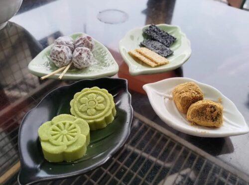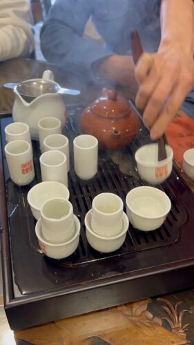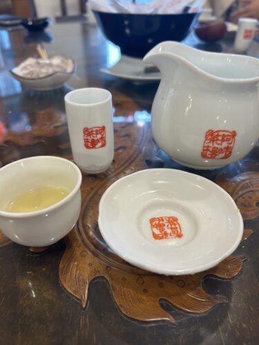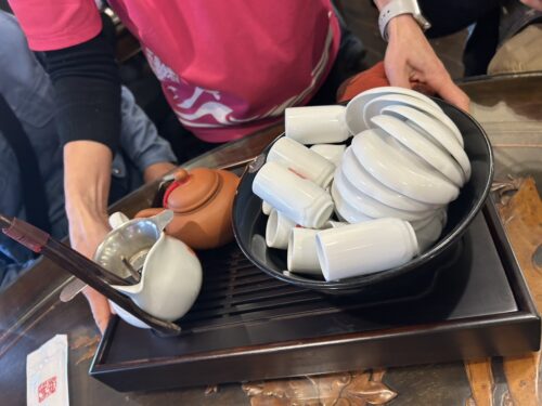 高山烏龍茶という名ですが味はほぼジャスミン茶!縦長の湯呑は香りを楽しむ用と、手を温める用らしいです!