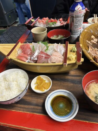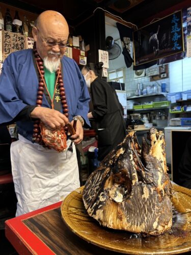 11時オープンなのですがオープンちょい前に「マグロの頭解体ショー」を見ることができました♪