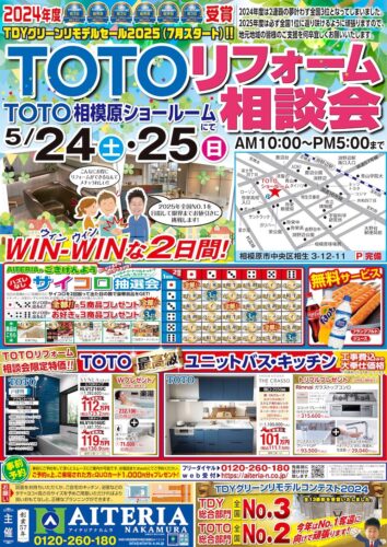 いよいよ、明日24(土)とあさって25(日)の2日間(AM10:00~PM5:00)、TOTO相模原ショールームにて