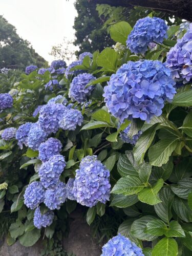 日本は青系のアジサイが多いようで、それは雨が多いので土の中のアルカリ成分が流れ出てしまうからだそうです。