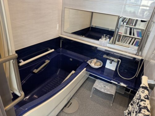 浴槽の色がクオーツブルーといって鮮やかなお色になっております👐