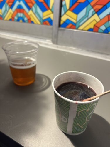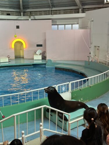 入園早々ビールを飲んでポテトを食べているとアシカショーのアナウンスが!!