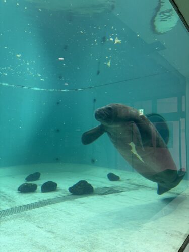 マナティはまさかのベジタリアン。レタスをとってもおいしそうに食べていました(笑)!!