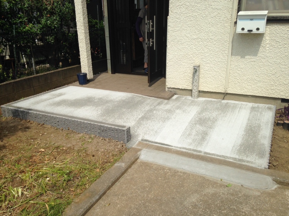 お客様はご高齢になられ、玄関アプローチの15センチの段差に負担を感じておられました。