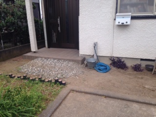 ご家族の方が、アイディアを絞りホームセンターで購入された玉砂利を敷き、段差を緩和されていました。