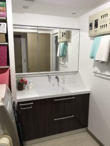 1200幅の化粧台は豪華さが出ますね~。 両袖のカウンター部分がとても広いので、お花を飾っても素敵です!下のキャビネットは引き出しタイプなので、収納力バツグン!W900の洗面台とW300のサイドキャビネットを組み合わせることもできます。収納量を重視するのであれば、W750洗面台にW450のサイドキャビネットもございます。
